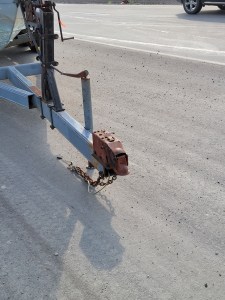 I’ve never seen, let alone driven, a trailer like this. It has surge brakes instead of disk brakes. No big deal, Bill’s driven one before. I noticed when we were hooking up and just before we left the the hitch of the trailer was really strange looking too. Like I said, I don’t know trailers so I didn’t realize something wasn’t right.