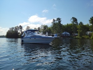 We drove the whole distance at only 70-80km/h with our four ways on and it ended up taking a bit more than 2.5 hours to get back to Golden Lake. The Phoenix arrived safe and sound, but Bill and I lost about 5 years off our lives on that trip, so we decided that the boat would have to stay there until we got a new, safe, secure, proper sized trailer.